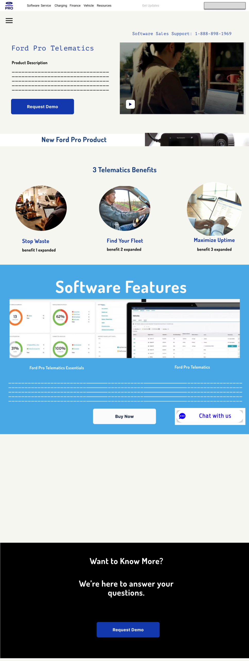 Landing page had an unstructured content layout. Telephone number located in header. Software benefits and features showcased in URL links. No FAQ in landing page.